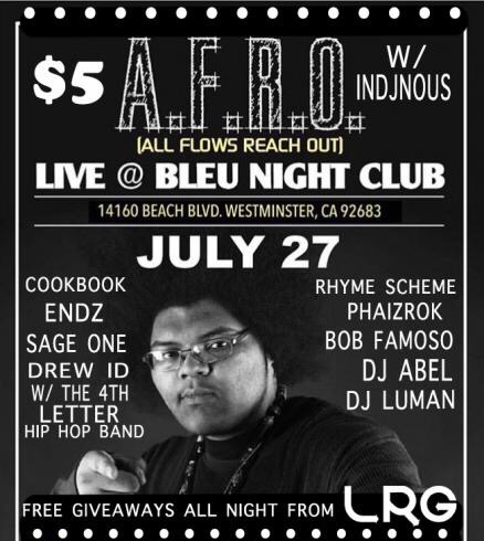 A.F.R.O. (ALL FLOWS REACH OUT) W/ INDJNOUS / COOKBOOK / ENDZ / RHYME SCHEME / PHAIZROK / DREW ID & 4TH LETTER / DJ ABEL / DJ LUMAN