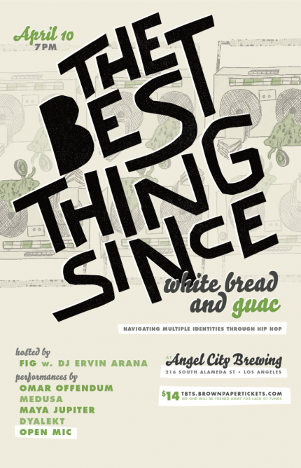 Created by and for up-and-coming Hip-Hop artists, enthusiasts, and new timers from all five elements, ‘The Best Thing Since…Series’ is fostering community at the open mic, inspiring conversation by thought-provoking artists, and working up a sweat on the dance floor. Be there in person or from anywhere with a data connection. Suggested donation of $14 can be given in advance here –> http://tbts.brownpapertickets.com/ (or at the door, cash only please).
