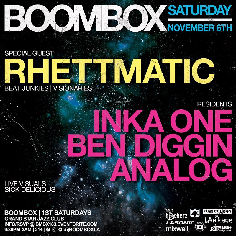 BOOMBOX is back SATURDAY with none other than Beat Junkieslegend DJ RHETTMATIC!! we’re more than hyped to welcome the return of one of the pioneers of this hip hop DJ shit we know and love. you already know the man drops strictly heat. y’all are in for a treat! RSVP here for discount entry. Los Angeles Bar/Club COVID-19 policy = negative COVID-19 test result (within 72 hours) or proof of vaccination required for entry. let’s gooo, Los Angeles!