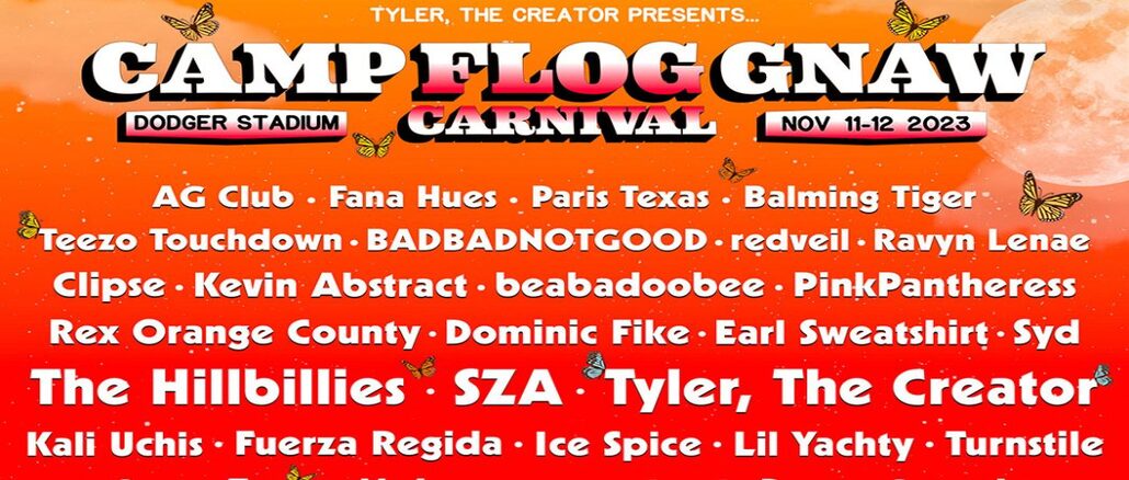 Tyler, The Creator is bringing his Camp Flog Gnaw festival back this fall for its first edition in four years, on November 11 and 12 at Dodger Stadium in Los Angeles. The lineup was unveiled over the course of a few hours as it was painted on a mural, and now it’s been revealed in full. In addition to Tyler himself, it includes SZA, The Hillbillies (a collaborative set from Kendrick Lamar and Baby Keem, named after their 2023 song of the same name), Kali Uchis, Fuerza Regida, Ice Spice, Lil Yachty, Turnstile, Earl Sweatshirt, Syd, Clipse, Kevin Abstract, beabadoobee, PinkPantheress, Cuco, Toro y Moi, WILLOW, d4vd, Domo Genesis, Teezo Touchdown, BADBADNOTGOOD, redveil, Ravyn Lenae, Maxo, Fana Hues, Left Brain, Maxo Kream, Liv.e, and more. See it in full below.