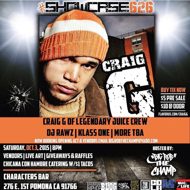 SHOWCASE 626: CRAIG G IN POMONA AT CHARACTERS BAR OCTOBER 3, 2015
