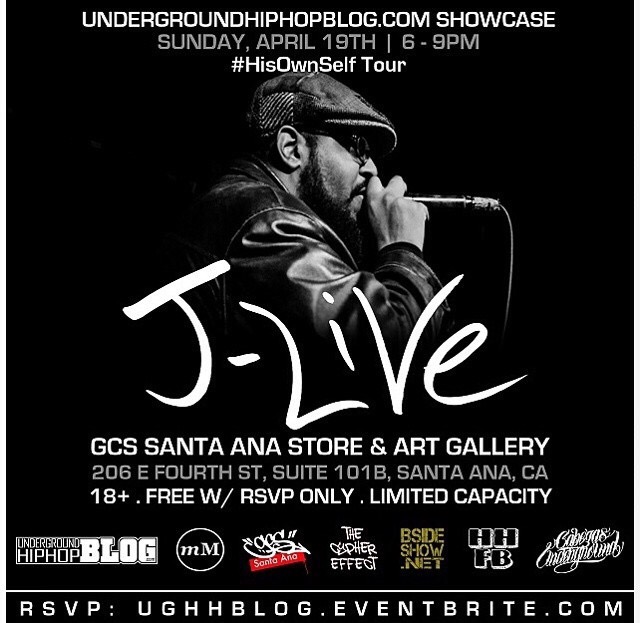 #LAHipHopEvents || 4/19 | @ughhblog presents exclusive showcase @gcssantaana store & art gallery w/ @realjlive (@mortiermusic) while on his #HisOwnSelf Album Tour | SUNDAY, APRIL 19TH, SANTA ANA, CA. 6-9PM, FREE / RSVP ONLY. Also performing @gottabekarim + more TBA!!! RSVP via @eventbrite >>> UGHHBLOG.EVENTBRITE.COM NEW ALBUM “His Own Self” SET TO RELEASE MARCH 31ST. SHOP GCSSantaAna.com for all your #HipHop needs. #JLive #GCS #RealHipHop #MortierMusic #HipHopShowcase