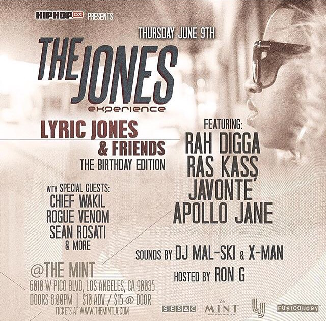 Lyric Jones & Friends w/ Rah Digga, Ras Kass, JaVonte’, Apollo Jane @ The Mint | June 9, 2016