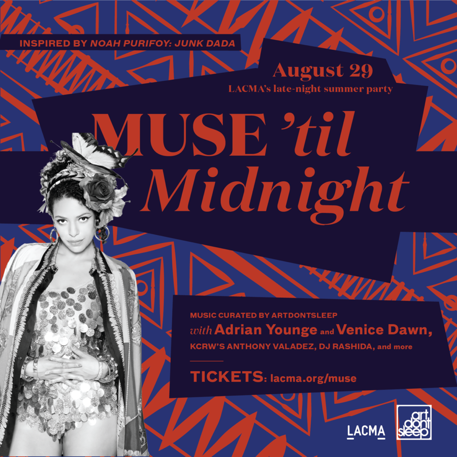Muse ‘til Midnight brings hundreds of art-lovers together once every summer for the ultimate late-night at LACMA. This year’s party features the work of Southern Californian artist Noah Purifoy, with music throughout the night curated by ArtDontSleep.