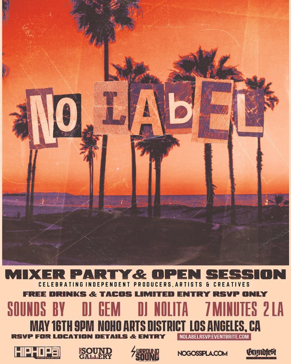 MAY 16th #NOLABEL a mixer party & open session celebrating independent artists, producers & creatives. Los Angeles, CA (NoHo Arts District)
