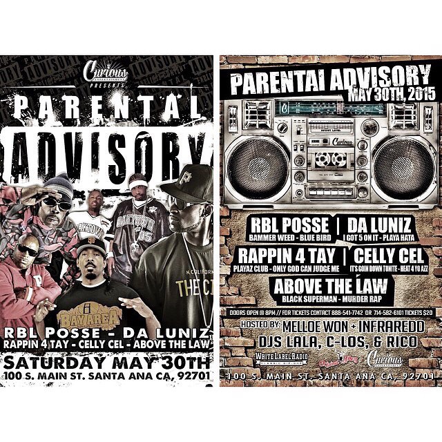 #luniz #rblposse #abovethelaw #cellycel #rappin4tay #curious_ent #curiousent #curiousentertainment #curious #igot5onit #bammerweed #bighutch #cold187um #blackc #numskull #yukmouth #PARENTALADVISORY