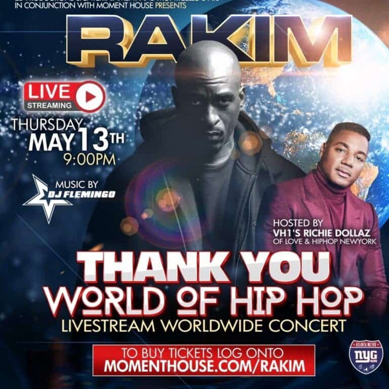 Rakim says THANK YOU to the world of hip hop in a Livestream concert Thursday, May 13th! You won’t have to wait until Rakim comes to a city near you for a live concert. He will be performing for his fans around the world in a streaming event live on May 13 at 9 PM EDT.