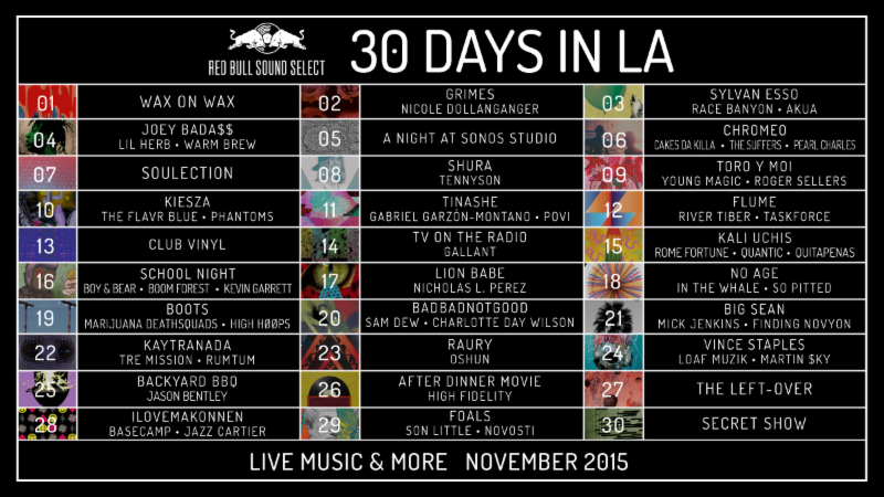 RED BULL SOUND SELECT 30 DAYS IN LA || NOVEMBER 2015 SCHEDULE