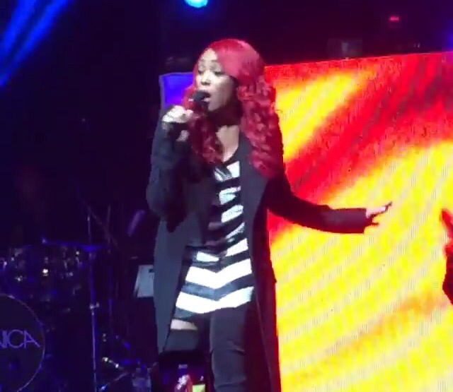 The crowd settled a bit once Rico left the stage, but Monica’s DJ had no intentions on keeping people in their seats. He played tons of old-school West Coast hits from the late Tupac and Nate Dogg and crossed-over to today’s hottest acts, including Rich Homie Quan and Fetty Wap. I couldn’t help but find myself on snapchat recording everyone’s enjoyment to share with my fellow snappers. The night started off great and we knew it would only get better once the red-headed maven hit the stage.