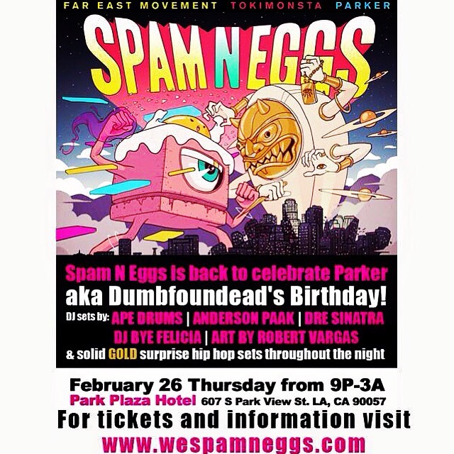 Spam n Eggs Contest to Celebrate w/ Dumbfoundead’s || Far East Movement || Tokimonsta + more!! 2/26