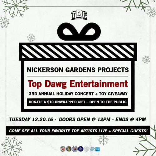 TDE 3rd Annual Holiday Concert + Toy Giveaway at Nickerson Gardens | December 20, 2016