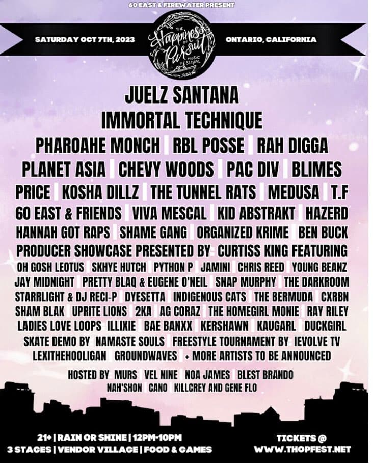 The Happiness of Pursuit Festival is an annual all-day independent Hip Hop culture Festival held in Ontario, California.
