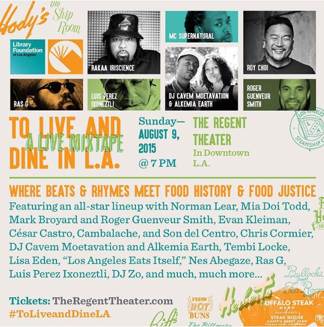 Join chef Roy Choi, artist Rakaa Iriscience (Dilated Peoples), and USC professor Josh Kun for a one-of-a-kind Los Angeles evening, where beats and rhymes (and jarocho and opera) will meet food history and food justice. Through music, video, storytelling, and more, an all-star lineup of very special guests will take us on a DJ-driven, multidimensional journey through the menu collection of the Los Angeles Public Library and shine a light on the issues of food insecurity currently facing the city. This evening is presented as part of the Library Foundation of Los Angeles project, To Live and Dine in L.A. Learn more at lfla.org/live-and-dine.